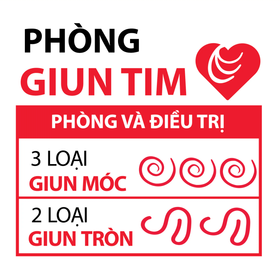 • Phòng bệnh giun tim, kiểm soát & chữa giun đũa, giun móc trên chó.