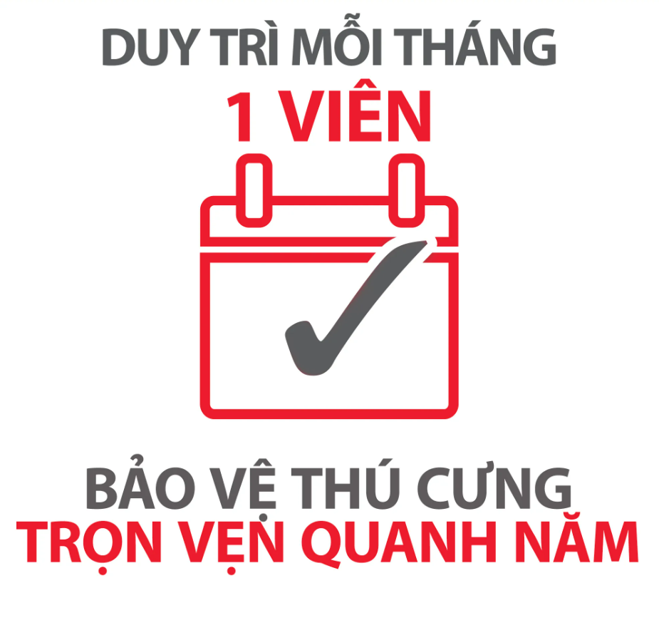 --- GIÁ LẺ 1 VIÊN --- CÔNG DỤNG: – Phòng giun tim ở chó bằng cách loại trừ ấu trùng giun tim (Dirofilaria immitis) ở giai đoạn xâm nhập mô khoảng một tháng sau