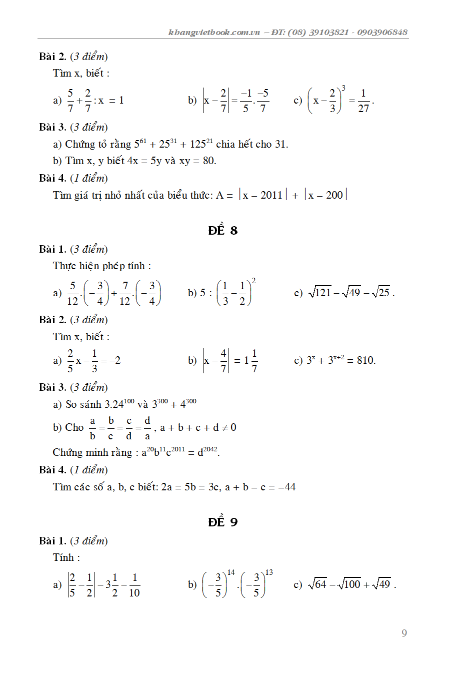 ✨ 100 Đề Kiểm Tra Toán 7 _KV
