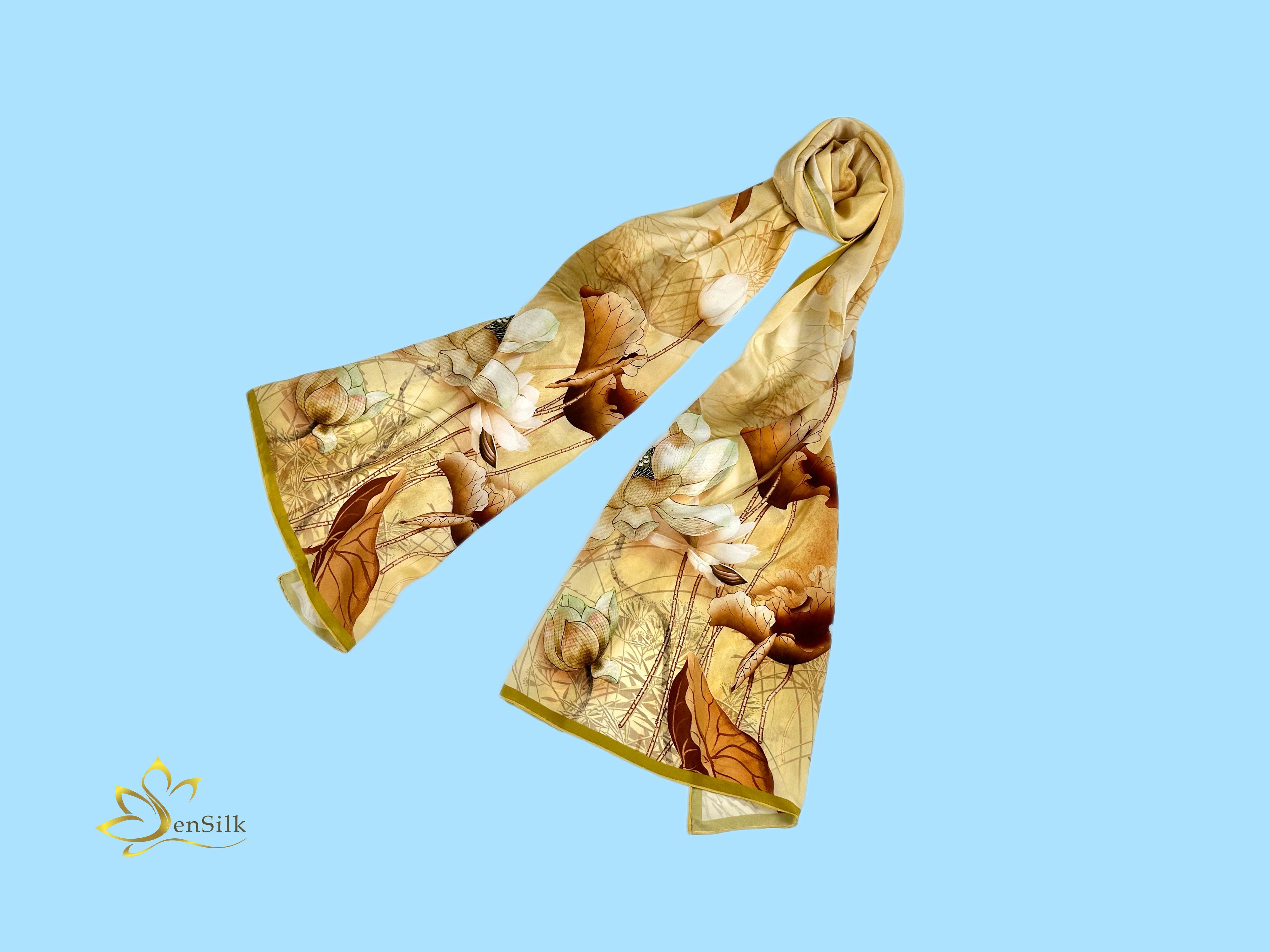 Khăn lụa tơ tằm vẽ hoa sen – Silk scarf with lotus #kimcatsilk #silkscarf
