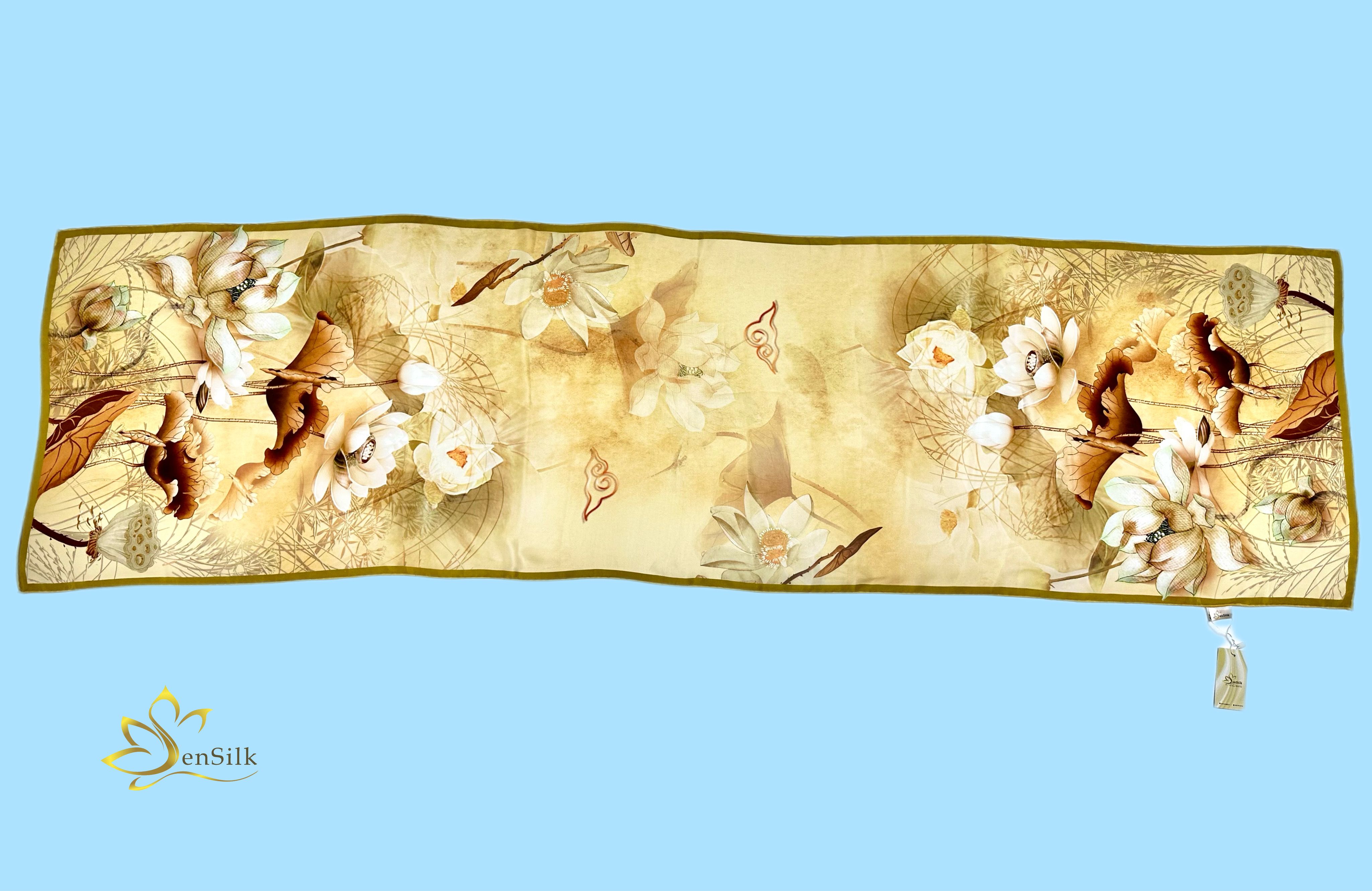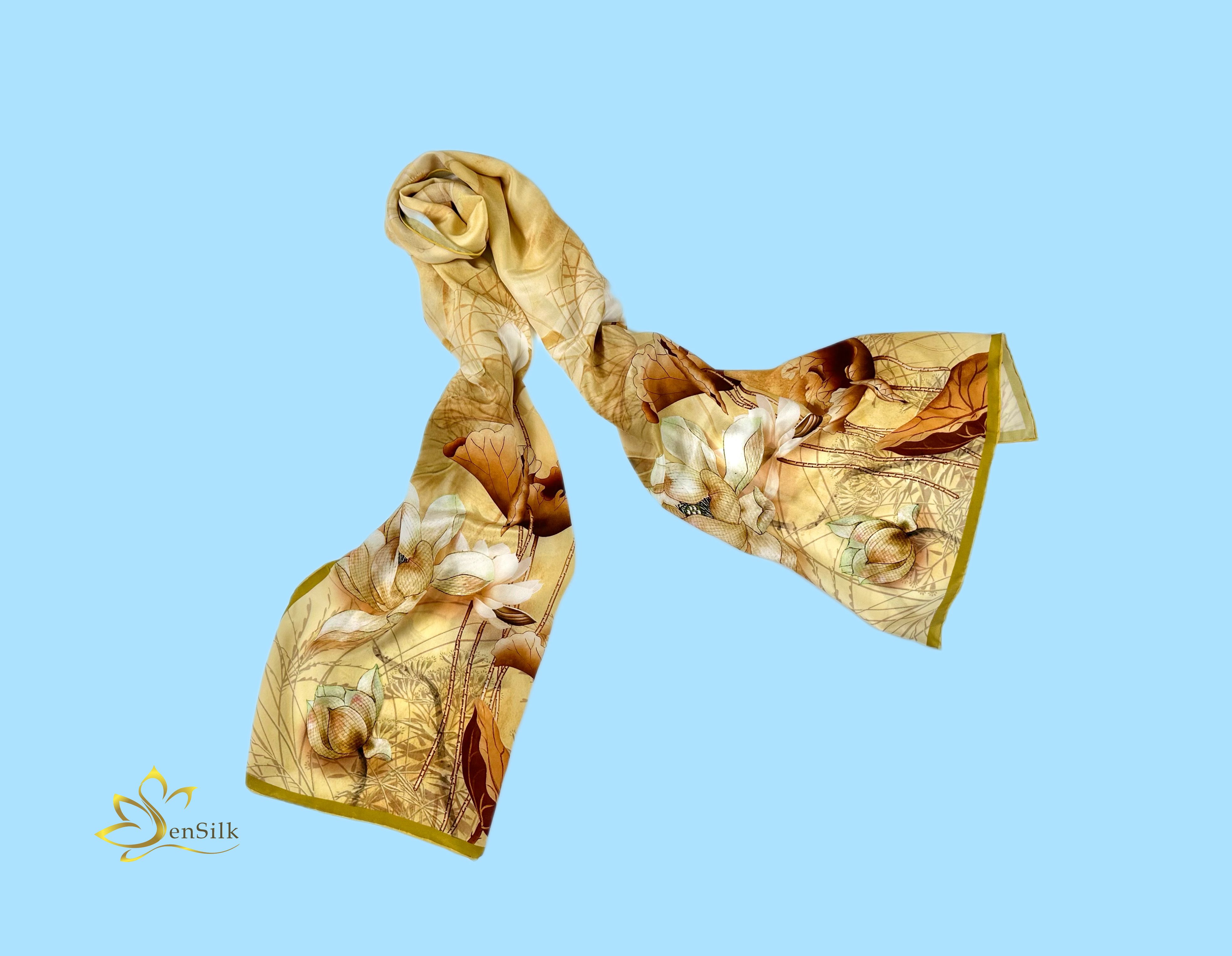 ✨100% Silk Print Scarf - Khăn Lụa Tơ Tằm in White Lotus - Quà Tặng Cao Cấp SenSilk KLDI03 180x55cm