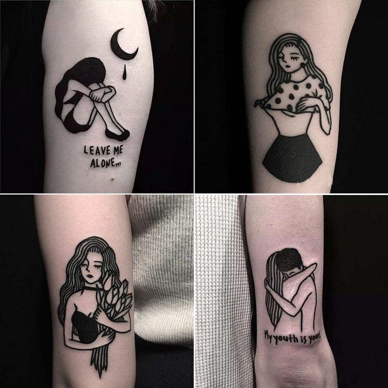 ✨100 tờ hình xăm cô gái tình yêu quyến rũ trắng đen phụ nữ hiện đại unisex Legaxi
