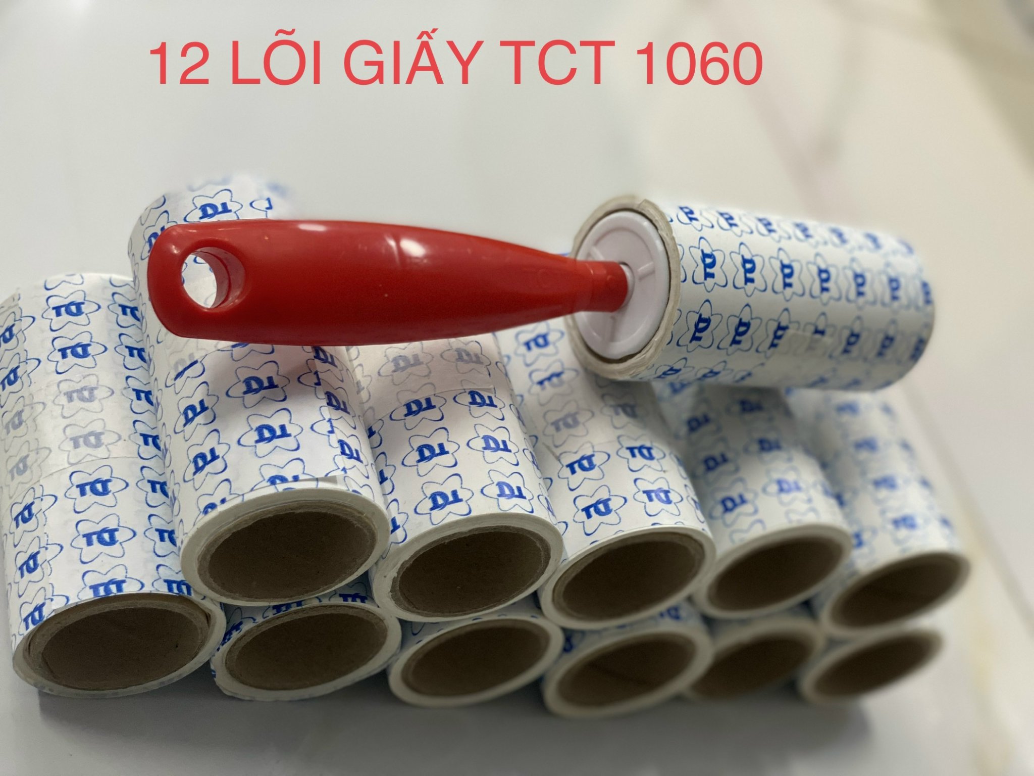 6 lõi giấy thay thế TCT 1060: lõi giấy 10cm, 60 lớp - Cây lăn bụi làm sạch: bụi, tóc, sợi vải thừa, lông chó mèo, rác… Hướng dẫn sử dụng: Dùng cuộn lăn bụi lăn trực tiếp trên bề mặt muốn vệ sinh. Sau khi lăn, bóc bỏ lớp đã sử dụng.