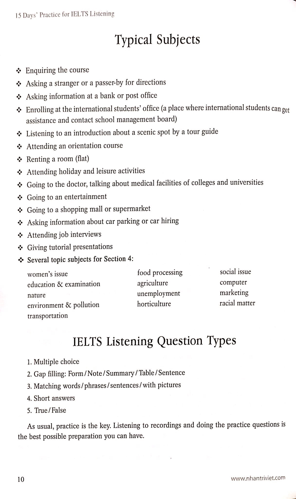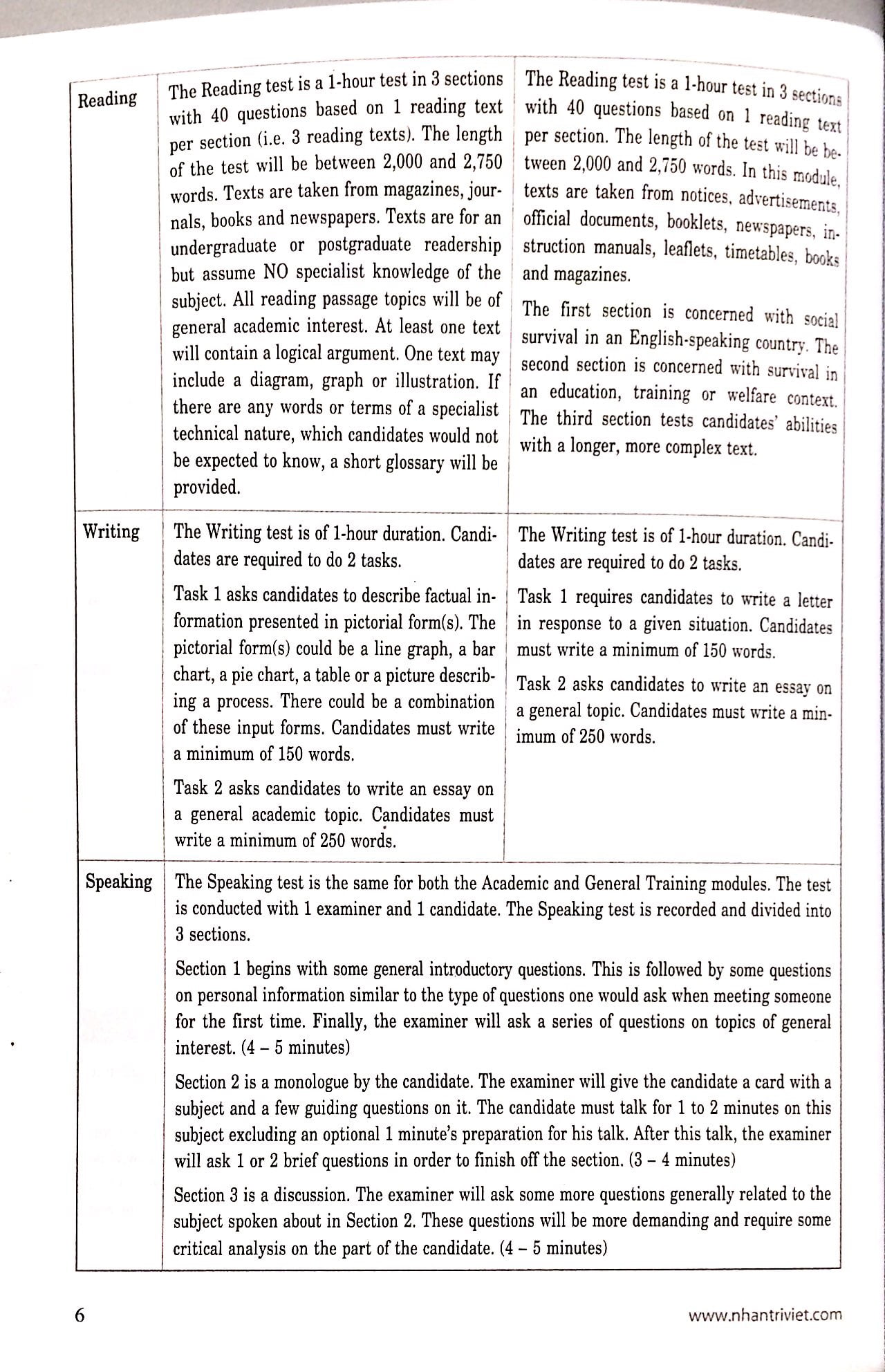 Cuốn sách giúp người học định hướng và làm quen với từng dạng bài của của từng kỹ năng trong một bài thi IELTS. Bên cạnh việc phân tích định dạng bài thi, cuốn