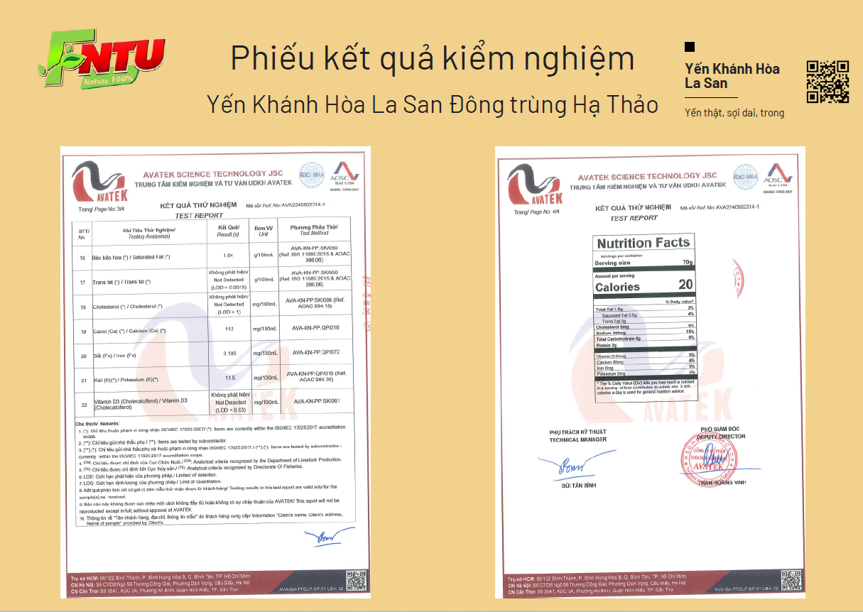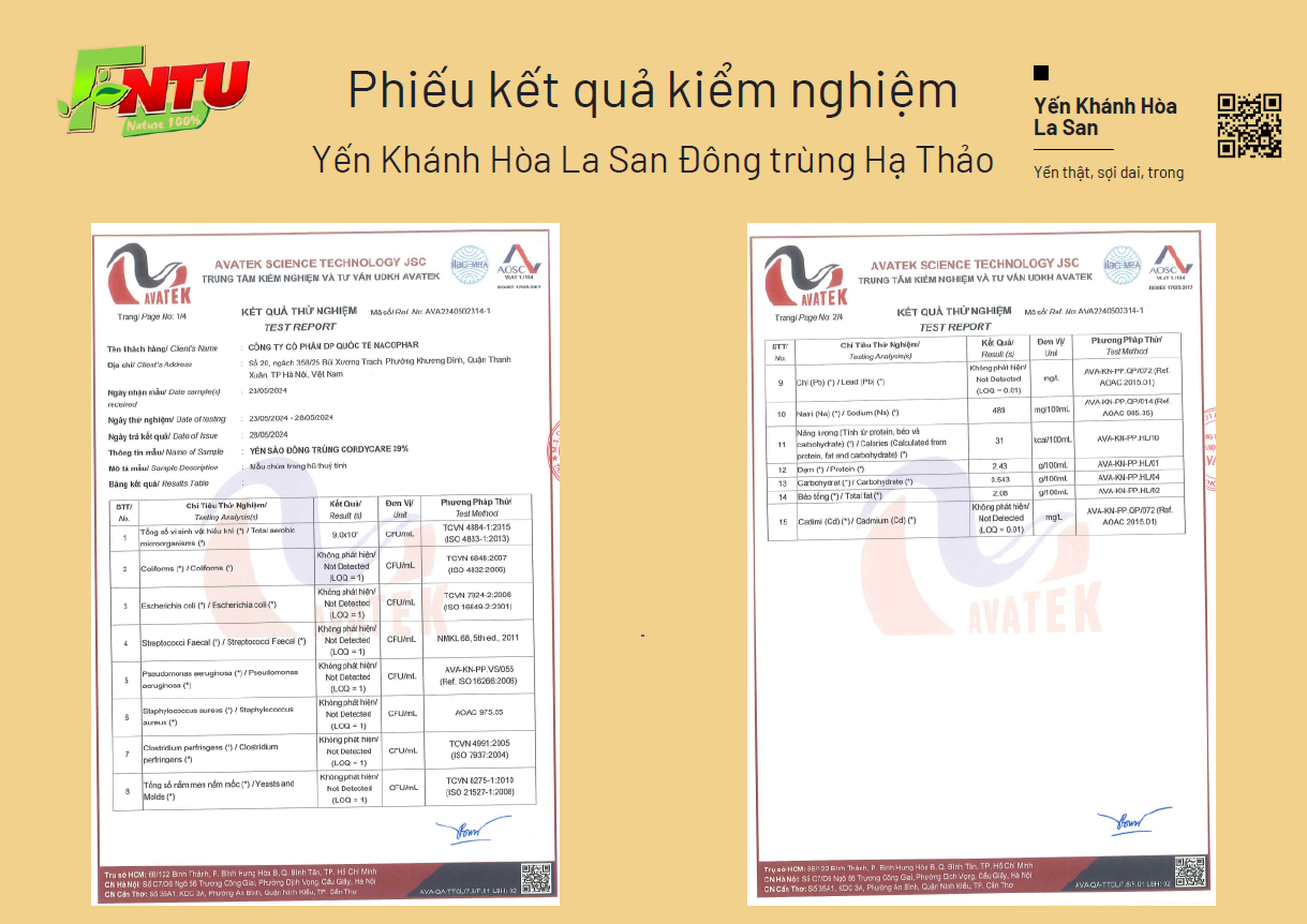 Yến Khánh Hòa La San Đông Trùng Hạ Thảo: được chế biến theo phương pháp truyền thống, kết hợp với công nghệ hiện đại trên dây chuyền thiết bị tiên tiến từ châu Âu. Điều này không chỉ giữ trọn vẹn hương vị tự nhiên mà còn bảo toàn tối đa các dưỡng chất quý giá có trong yến.