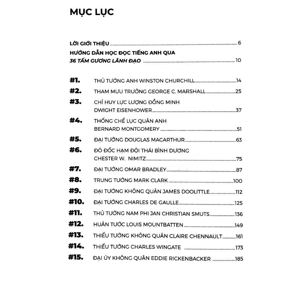 Qua cuộc đời của “36 tấm gương lãnh đạo” trong cuốn sách này (phần lớn họ là người Anh-Mỹ), Mercy hy vọng bạn sẽ có được những hiểu biết nhất định về văn hóa, lịch sử, tâm lý, tình cảm, cách đối nhân xử thế và nghệ thuật lãnh đạo của người Anh-Mỹ, từ đó bạn có thể thấu hiểu sâu sắc hơn các câu chuyện và thông điệp hữu ích từ những người nói tiếng Anh mà bạn sẽ gặp gỡ và trò chuyện trong tương lai (phần lớn họ sẽ là người Anh-Mỹ và những con người có lịch sử gắn bó với người Anh-Mỹ). Mercy hy vọng rằng bạn sẽ xây dựng được tình bạn đáng tin cậy với nhiều người bạn trên toàn thế giới, bởi qua quá trình trò chuyện tự nhiên với bạn trong cuộc sống và công việc, họ sẽ trở thành những người thầy tiếng Anh xuất sắc nhất của bạn, như chính những người bạn Mỹ đã tới và dạy tiếng Anh cho các thành viên của Mercy Team kể từ năm 2016.