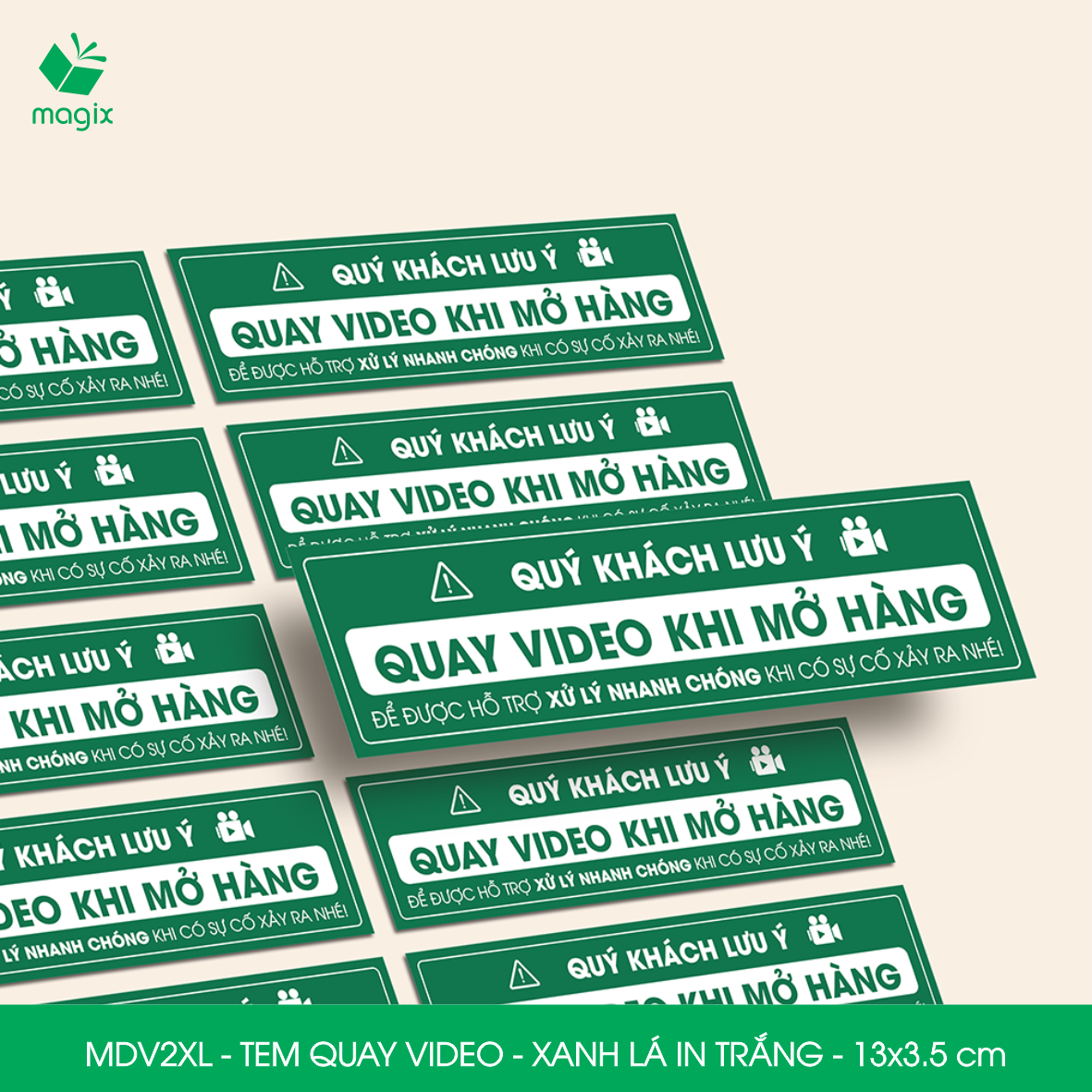 ✨500 Tem chú ý quay video trước khi mở hàng, decal dán hộp - 13x3,5 cm - Xanh lá in trắng - MDV2XL