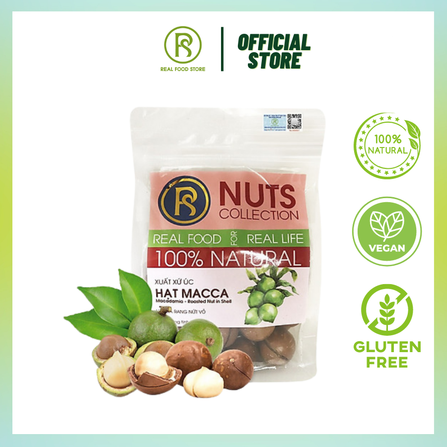 Mua tại TiktokGiới thiệu HẠT MACCA REAL FOOD có xuất xứ từ Úc, được mệnh danh là nữ hoàng của các loại hạt khô vì những công dụng vượt trội dành cho phụ nữ. Hạt Macca Real Food đường nứt trên vỏ vừa phải dễ tách lấy nhân hạt và được rang để tăng thêm vị béo, bùi, ngọt. Phù hợp để cung cấp dinh dưỡng cho Mẹ mang thai, Người lớn tuổi, Trẻ em đang trong giai đoạn cần bổ sung dinh dưỡng. Introduction MACADAMIA NUTS REAL FOOD from Australia, are called as “Queen of nuts” according to the nutrient content in the macadamia nuts, especially for women. Macadamia nuts are simply cracked to get the kernels out. Then the kernels are roasted to increase nutty taste, sweet. It is beneficial for nutrition supplement for pregnant women, elder, child. Thành phần - Ingredient 100% HẠT MACCA – 100% MACADAMIA NUTS Hướng dẫn sử dụng Tách vỏ lấy nhân hạt, sau đó: Ăn trực tiếp Rang hoặc giã nhuyễn rắc lên kem, sữa chua, salad trộn để tăng giá trị dinh dưỡng cho món ăn. Nấu sữa hạt macca hoặc phối trộn với các loại hạt khác để nấu sữa hạt hỗn hợp. Gợi ý: hạt hạnh nhân, hạt dẻ, hạt lanh,… Suggested use Cracking nuts shell, then take the kernel and: Eating as snack. Roasting or chopping then sprinkle on ice cream, yogurt, mixed salad to enhance nutritional value of your meal. Making walnut milk or mix with other nuts to make mixed-nut milk (suggestion: almond nuts, macadamia nuts, flax seeds,…) Hướng dẫn bảo quản Để nơi khô ráo thoáng mát, tránh ánh nắng trực tiếp. Có thẻ bỏ vào tủ lạnh. Đóng kín bao bì sau mỗi lần sử dụng. Storage Store in a dry place, away from direct sunlight. You can put it in the fridge. Keep packaging closed after use.