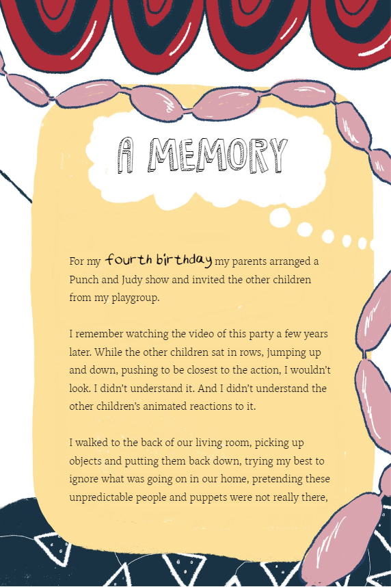 There'll be scary moments involving toilets and crowded trains, heart-warming tales of cats and pianos, and funny memories including my dad and a mysterious tub of ice cream. Along the way you'll also find some Very Crucial Information about autism.