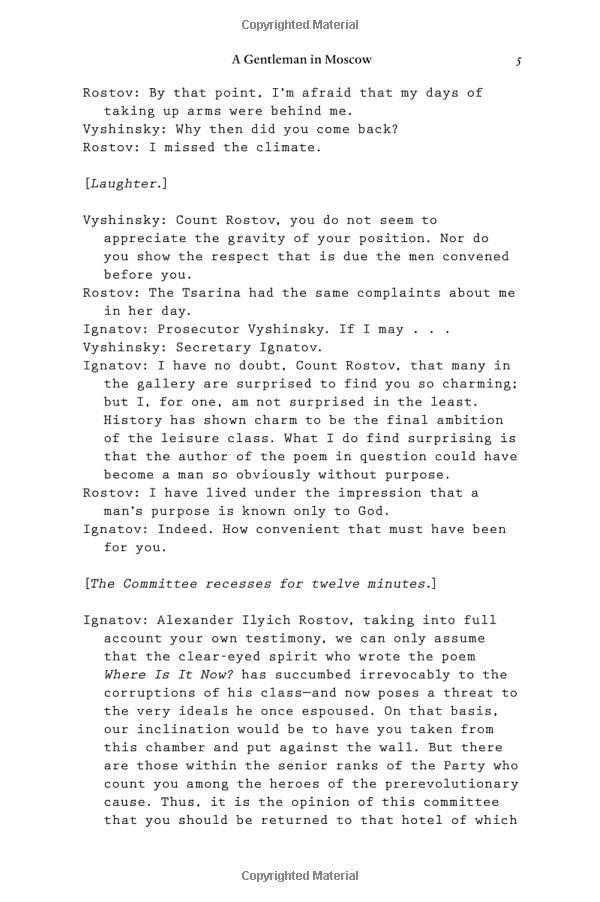 Brimming with humor, a glittering cast of characters, and one beautifully rendered scene after another, this singular novel casts a spell as it relates the count's endeavor to gain a deeper understanding of what it means to be a man of purpose.