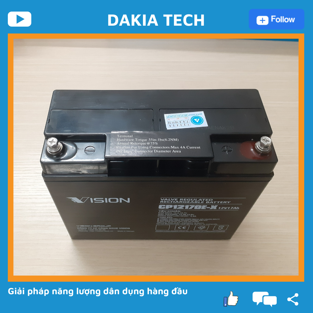 Ắc quy Vision 12v 17ah, Ắc quy cho ups, thang máy, v.v.