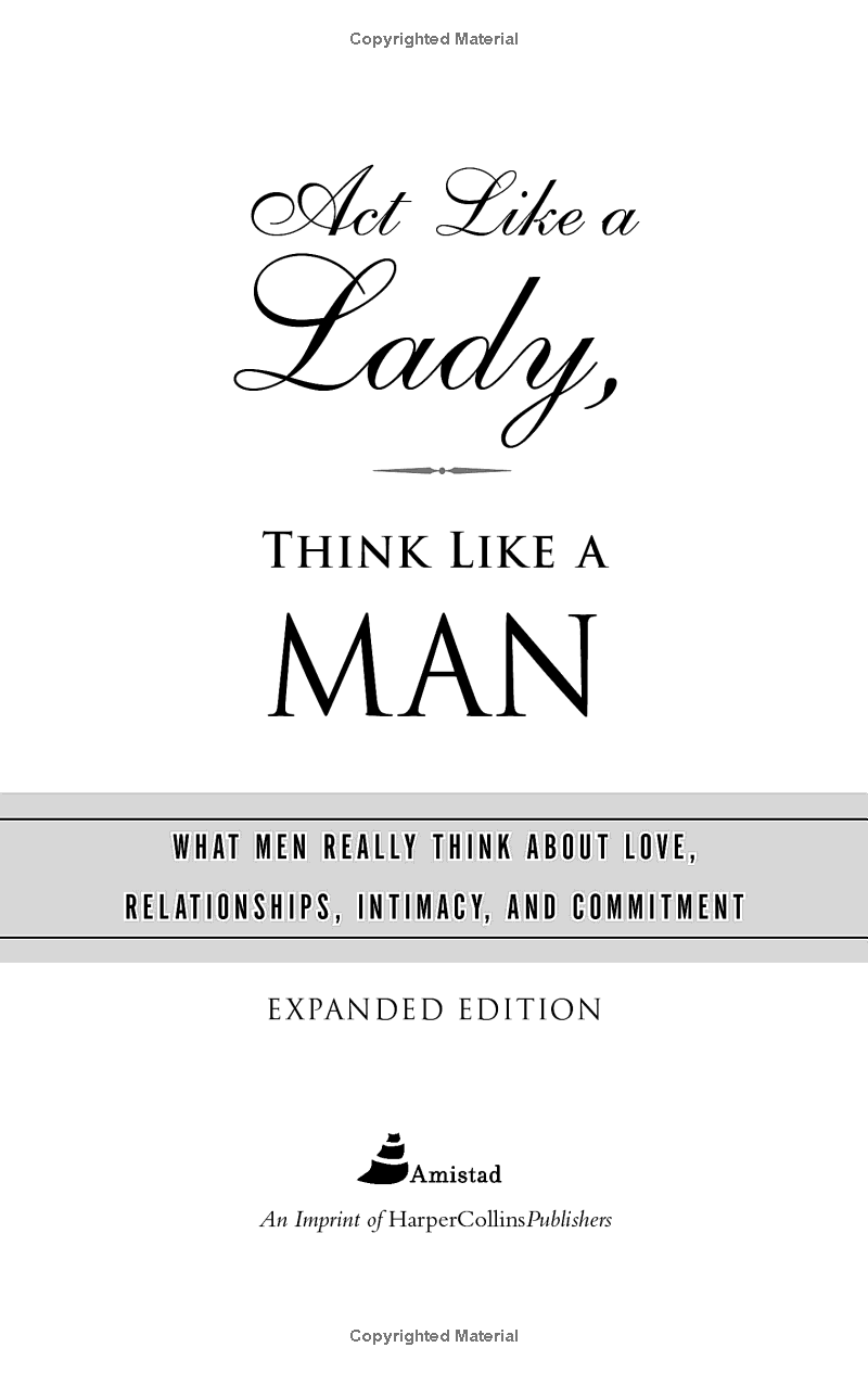 With liberal use of his own adventures in love and courtship, Act Like a Lady, Think Like a Man is an honest, compelling, and realistic examination of how men think about love and sex and what women need to know so that they can set realistic expectations of the men in their life.