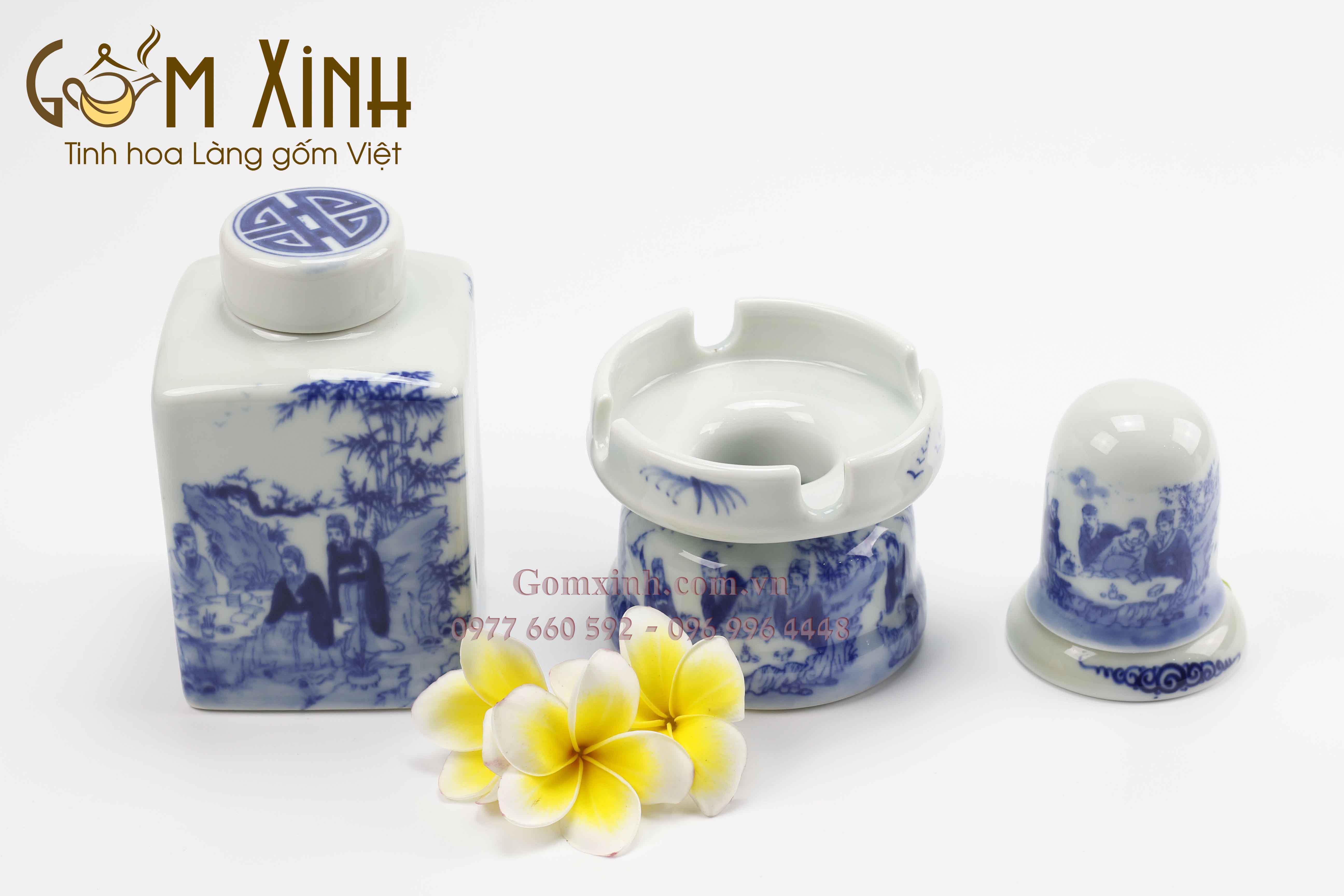 Bộ ấm tích 1,5 lít Trúc Lâm Thất Hiền men lam Bát Tràng. #amchenbattrang #truclamthathien