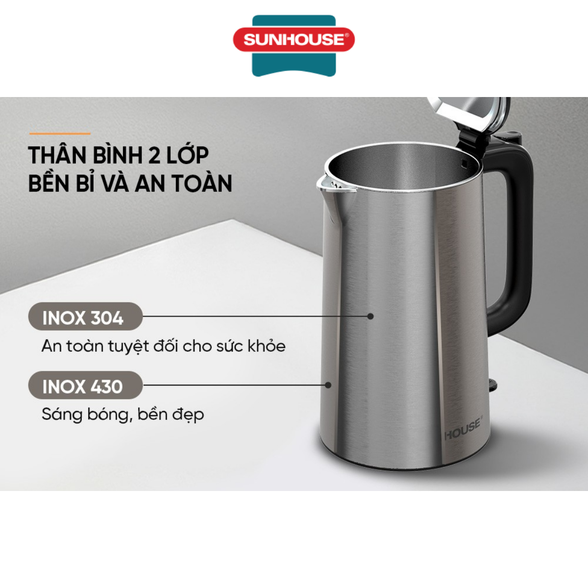 Đánh Giá Ấm siêu tốc inox 2 lớp 1.8L SUNHOUSE SHD1351 - Công suất 1500W