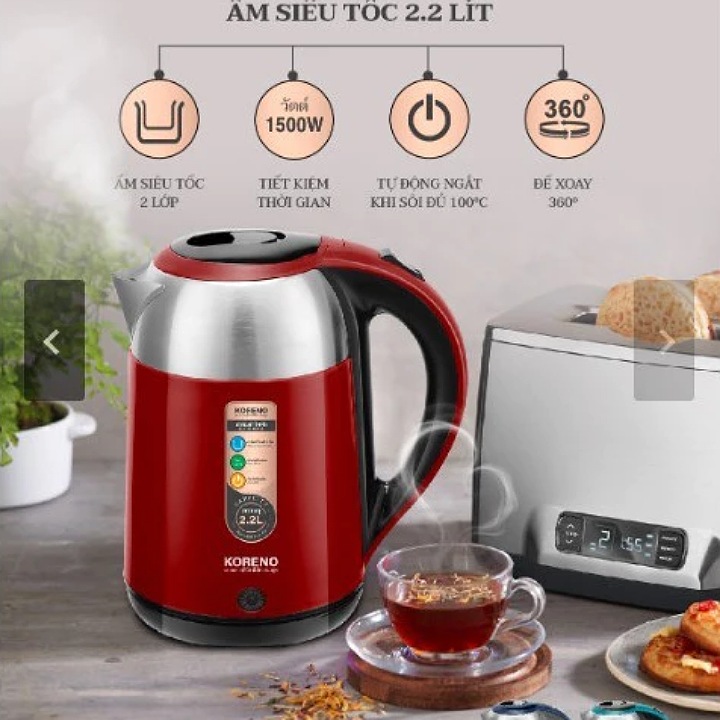 ✨Ấm Siêu Tốc KORENO KN-258 - Ấm Đun Nước Dung Tích 2.2L Hàng Chính Hãng Bảo Hành 12 Tháng