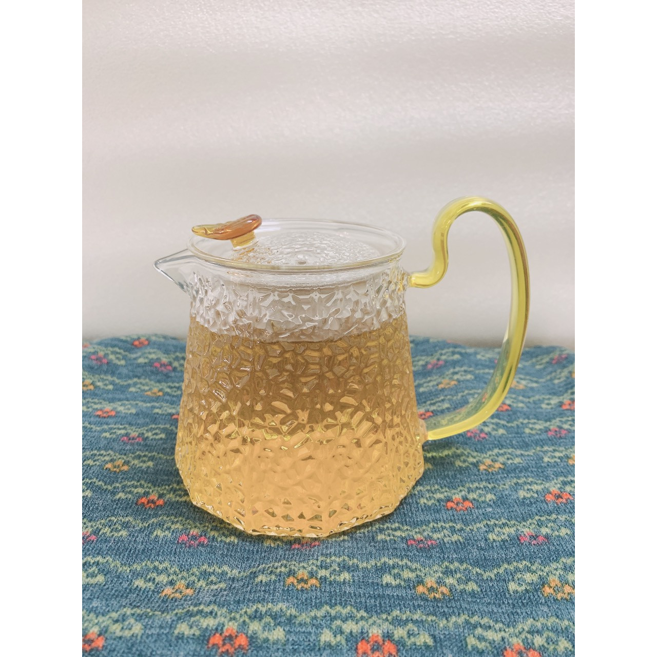 ẤM TRÀ THỦY TINH CÓ LÕI LỌC CHỊU NHIỆT NHIỆT CAO CẤP VÂN NHÁM QUAI VÀNG CRYSTAN 500ml