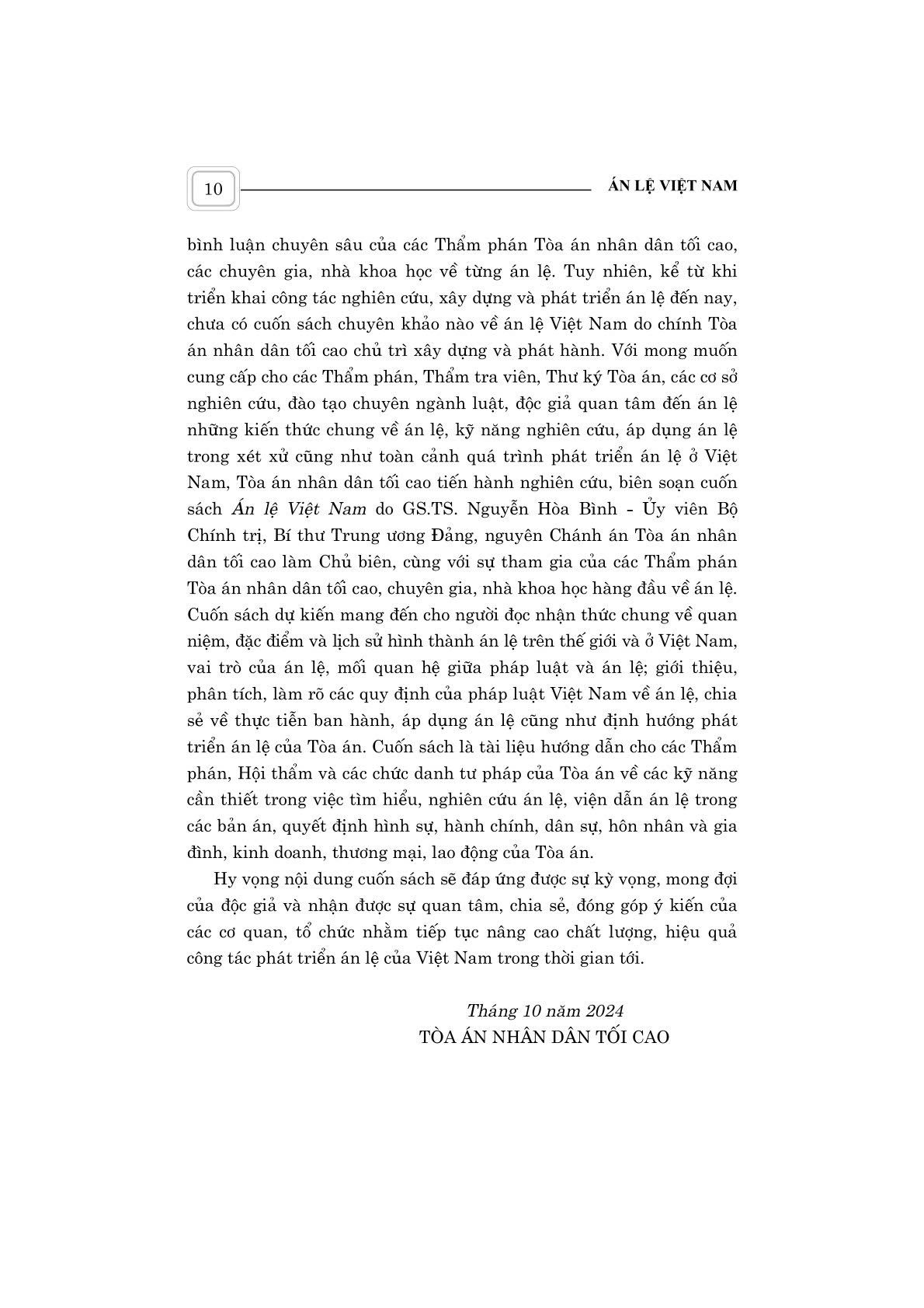 Án Lệ Việt Nam (Sách chuyên khảo, xuất bản lần thứ 2) Tác giả: Tòa Án Nhân Dân Tối Cao - GS.TS. Nguyễn Hòa Bình (Chủ biên) Nhà xuất bản: Chính trị quốc gia Sự