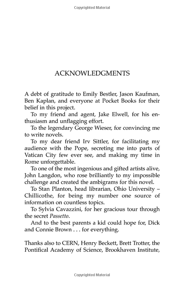 Angels & Demons is a 2000 bestselling mystery-thriller novel written by American author Dan Brown and published by Pocket Books. The novel introduces the character Robert Langdon, who is also the protagonist of Brown's subsequent 2003 novel, The Da Vinci Code, and 2009 novel, The Lost Symbol. It also shares many stylistic literary elements with its sequel, such as conspiracies of secret societies, a single-day time frame, and the Catholic Church. Ancient history, architecture, and symbolism are also heavily referenced throughout the book. A film adaptation was released on May 15, 2009, though it was set after the events of The Da Vinci Code film, which had been released in 2006.