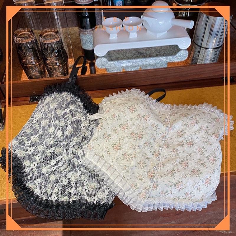 Áo bra 2 dây ren hoa nhí viền bèo có mút đính cúc ngọc tiểu thư