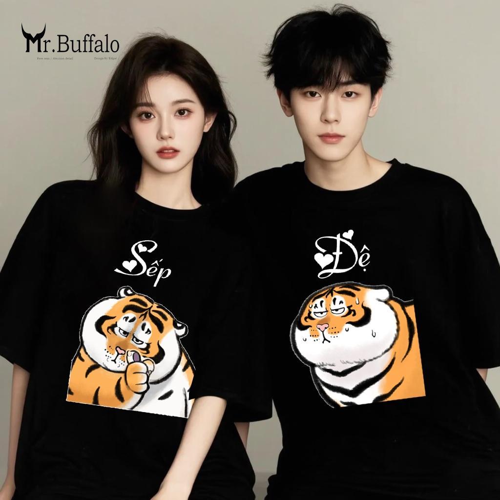 ✨Áo đôi ,áo thun cặp nam nữ tay lỡ Unisex Sếp đệ form rộng vải cotton 100% T74T75 - Mr.Buffalo
