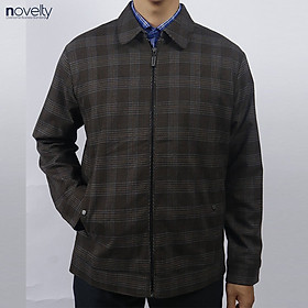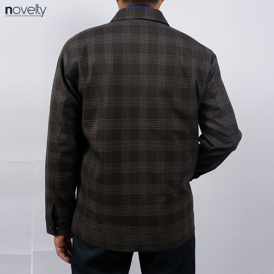 Áo Jacket nam 2 lớp cổ bẻ Novelty Casual caro nhỏ nâu đậm NJKMCNMT3B2305302