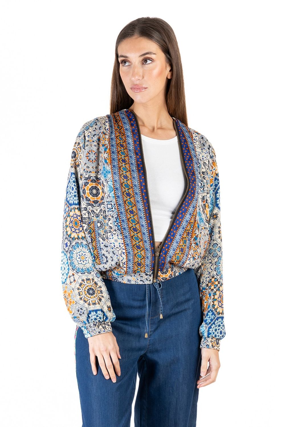 Áo Khoác Thu Đông Isla Bonita, chất liệu lụa mềm mại cao cấp, lớp lót bằng nỉ bên trong dày dặn, ấm áp. Dây kéo thân trước. Phom rộng như freestyle. Dài áo 60cm (50x60cm)Phù