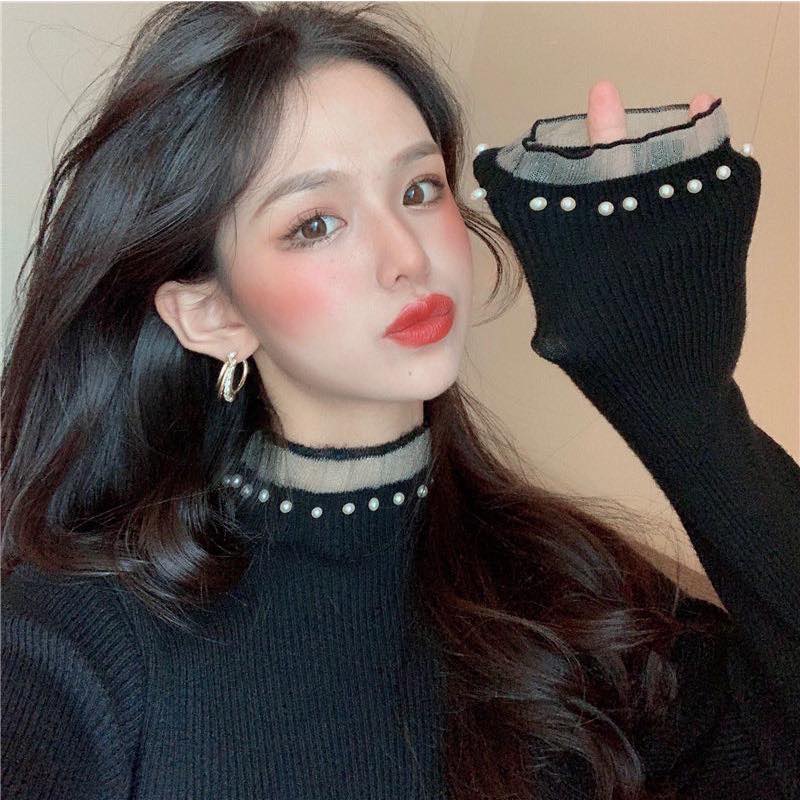 Áo len cổ lọ ren đính ngọc thời trang gợi cảm cho nữ được thiết kế thanh nhã với kiểu dáng trẻ trung, hợp thời trang. - Áo len nữ, áo nữ được may từ
