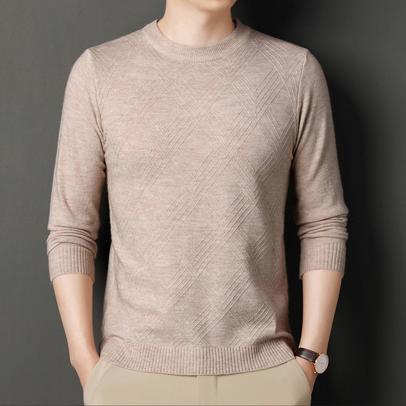 áo len nam cổ tròn, họa tiết kẻ Hàn Quốc, len dệt kim dày dặn ưởng mềm mịn, dày dặn, giữ ấm tốt,