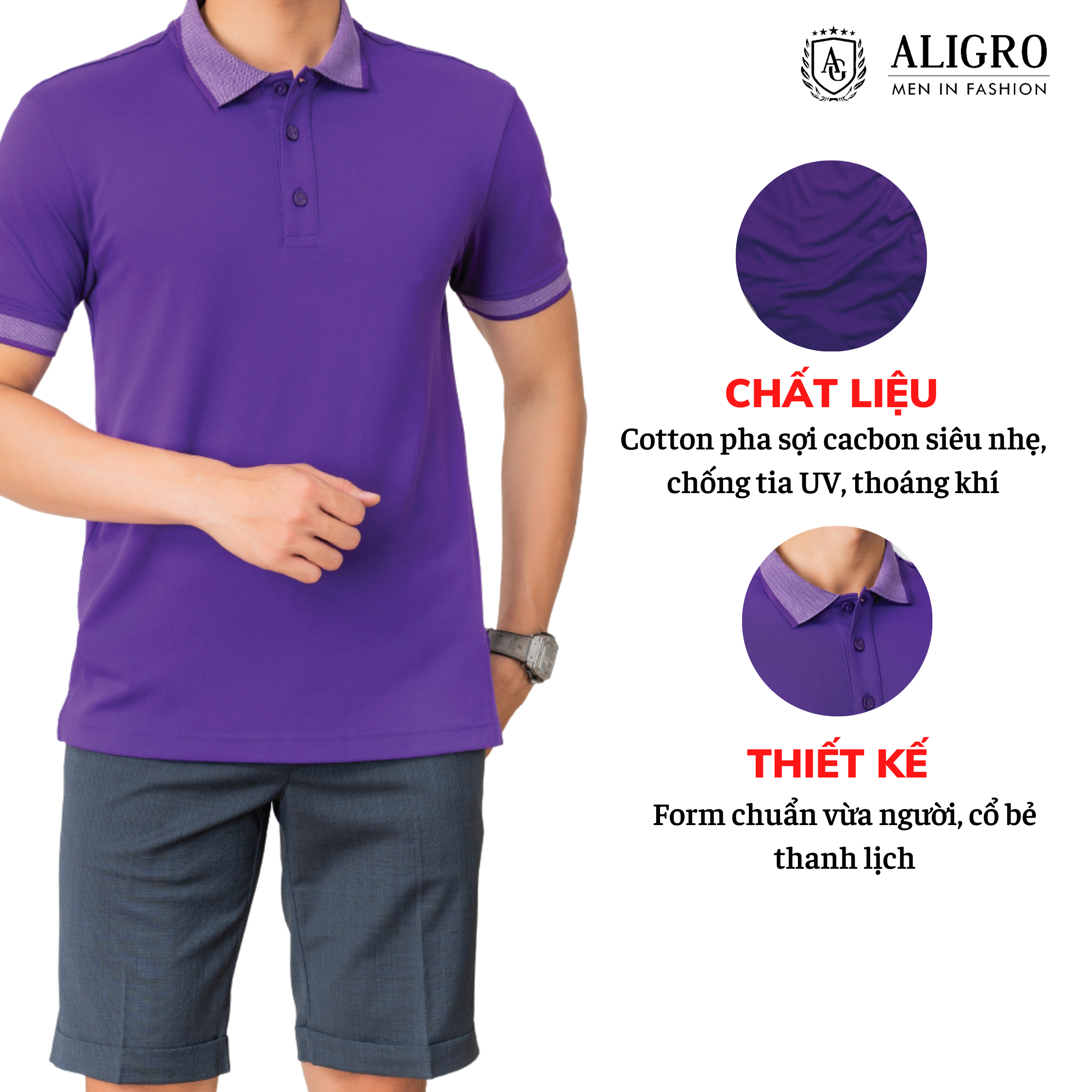 Mua tại Tiktok️ GIỚI THIỆU THƯƠNG HIỆU Là thương hiệu thời trang thiết kế nam với những sản phẩm chất lượng cao, giá thành phù hợp, Aligro nâng tầm phong cách quý ông qua những thiết kế hiện đại lịch lãm, phong cách châu Âu trên nền tảng cảm hứng từ chính đất nước con người Việt. ️ THÔNG TIN SẢN PHẨM Cổ dệt - tay bo dệt jacka tinh tế tạo điểm nhấn cho chiếc áo. Chất vải COTTON pha sợi CACBON, siêu nhẹ, chống tia UV, thấm hút mồ hôi tốt, kháng khuẩn, không xù, không bám dính, bao giặt máy. Màu: Xanh,Trắng, Xám, Tím, Size S, M, L, XL, XXL tương đương 58kg-87kg Sản xuất trên dây truyền hiện đại nhất Việt Nam, uy tín. Bao đổi hàng nếu có lỗi. ** Thiết kế: