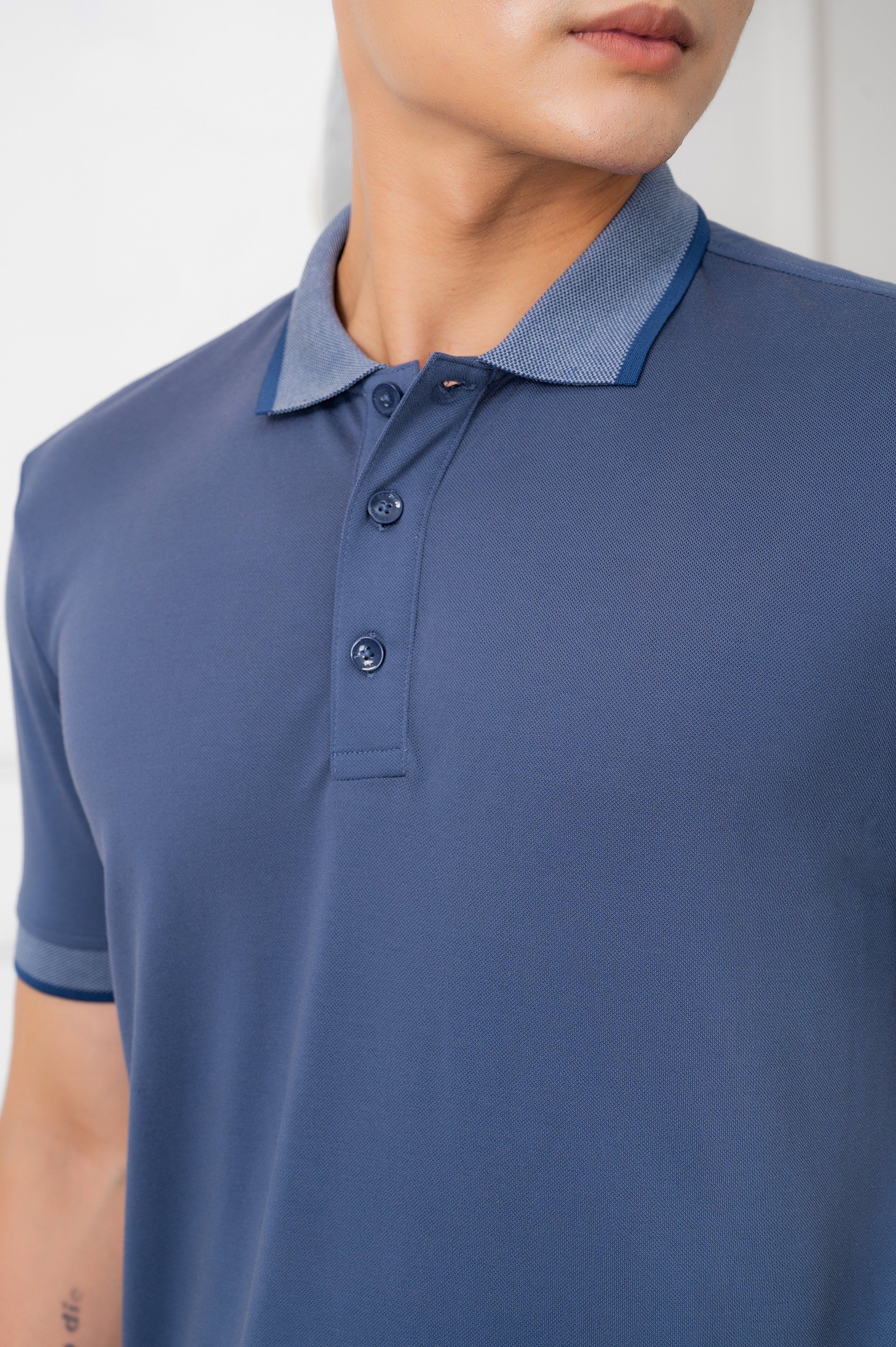 Thành phần 95%Bamboo/Coolmax 5%Spandex Form Regular fit Mô tả Áo Polo nam Novelty Bamboo cổ sơ mi màu xanh dương Regular fit Mã sản phẩm NATMMTMT3R181079N