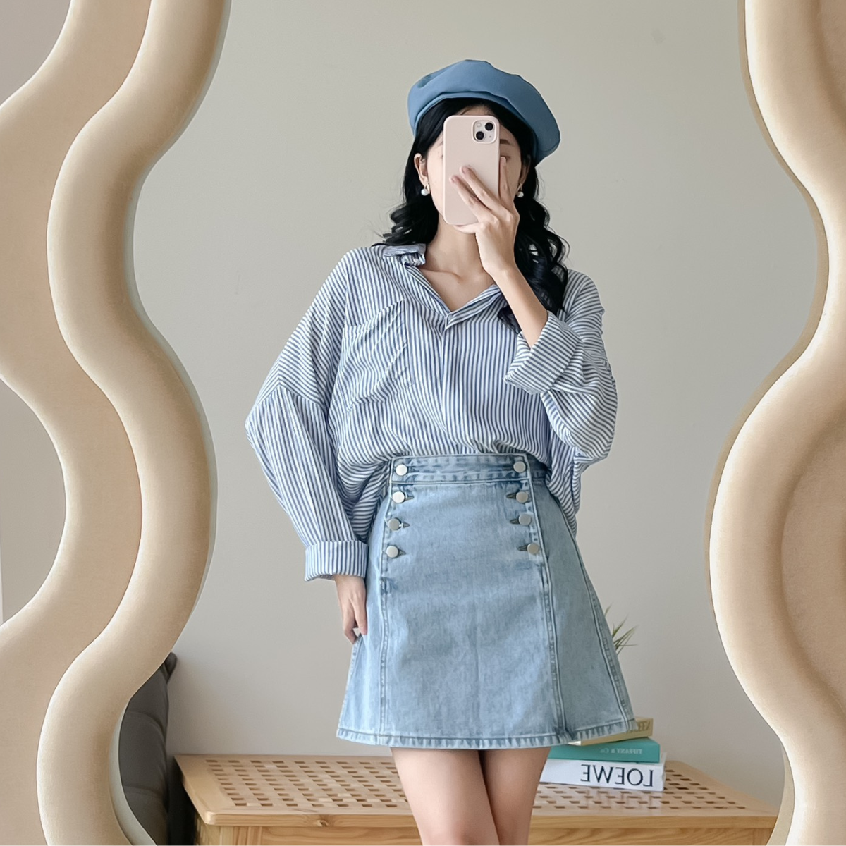 Hothit tiếp khum taaaaa sơ mi sọc khuy chéo xinh xỉuuc form iu lắm lun ạ Shop về 2 màu Freesize dưới 58kg Sản phẩm này là tài sản cá nhân được bán bởi Nhà