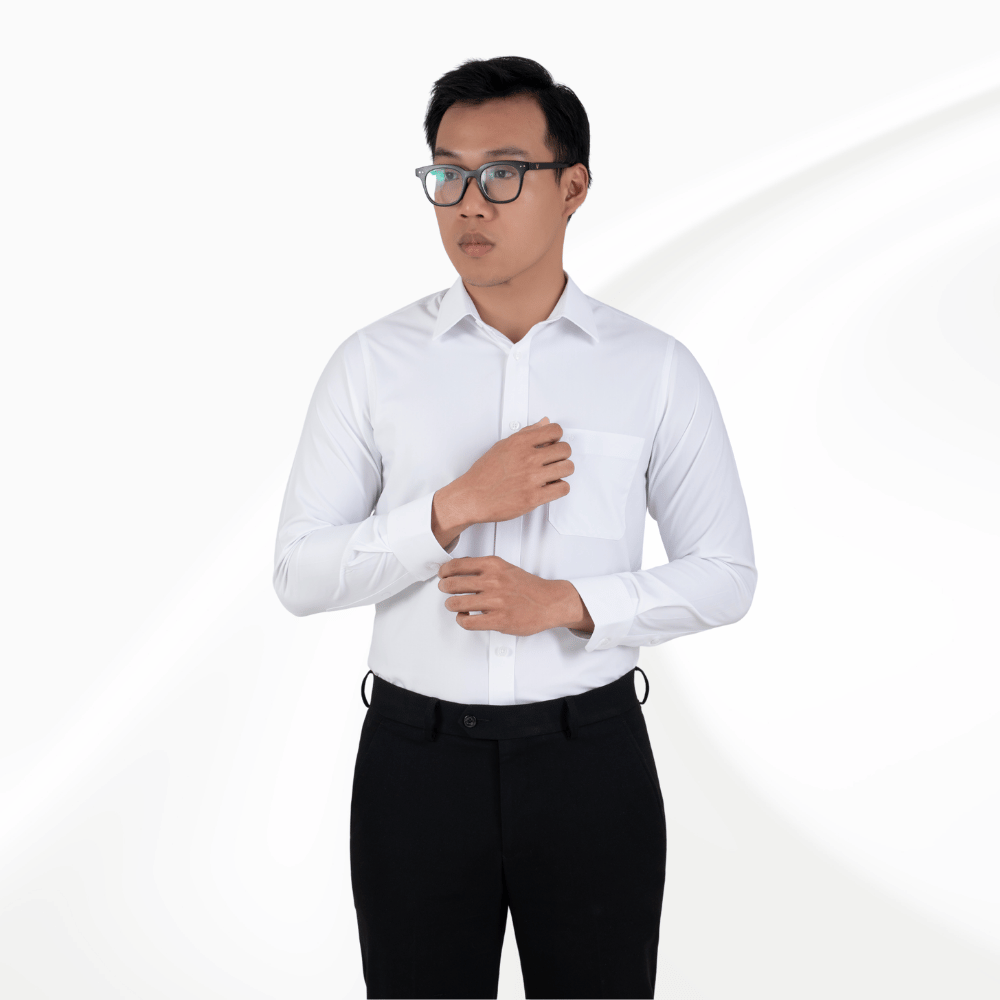 Siêu phẩm áo sơ mi trắng nam tay dài Không túi HOT TREND – Món đồ không thể thiếu trong tủ đồ phái mạnh! Trẻ trung, thanh lịch, dễ phối đồ, phù hợp cho đi