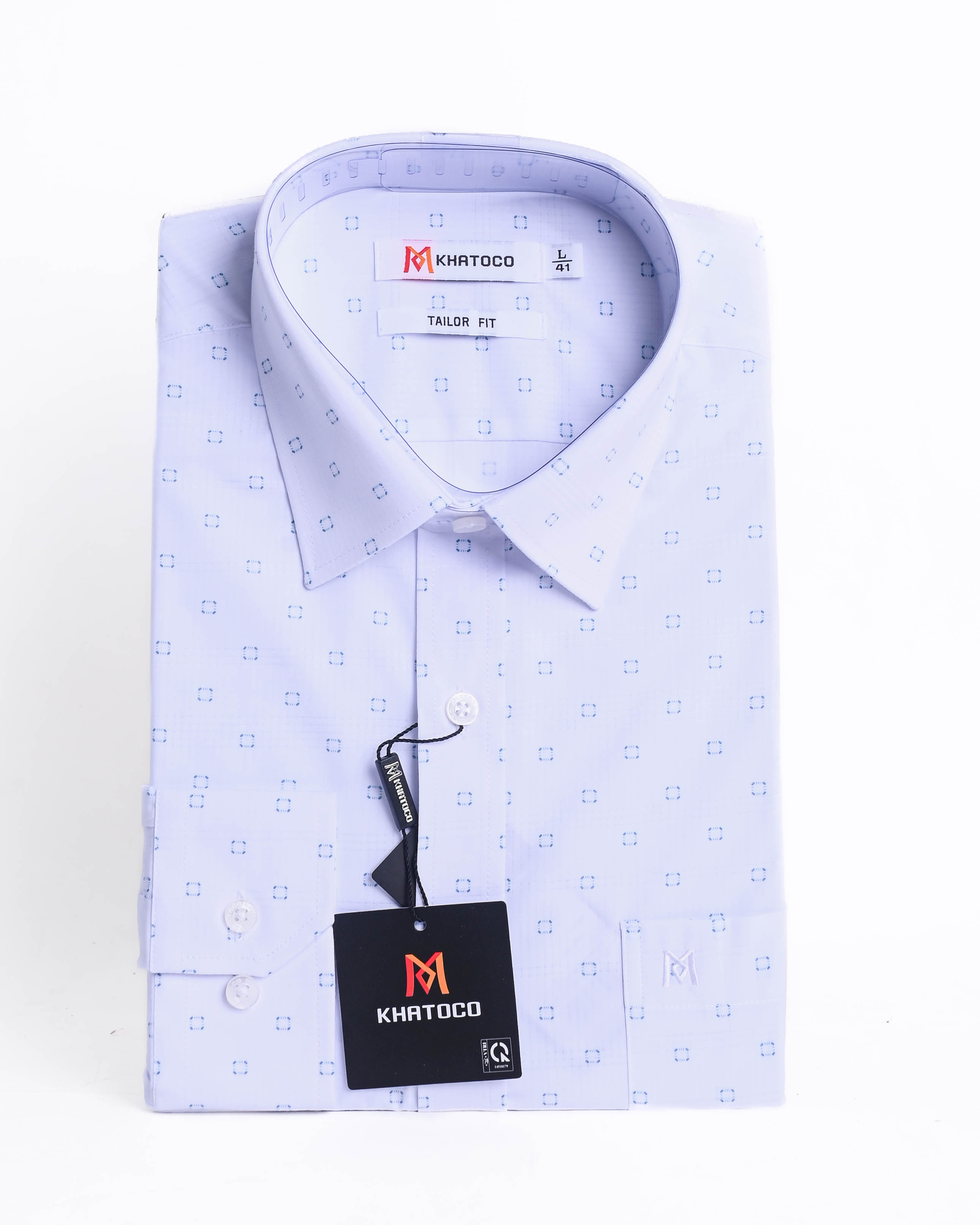 (V) MÔ TẢ: Form Taylor, tai dài Form áo tiêu chuẩn với form áo rộng vừa phải, không ôm sát cơ thể, bó nhẹ ở vùng eo và tay áo. Độ rộng vùng ngực và nách cũng sẽ fit hơn với cơ thể. Không quá rộng như form áo cổ điển. Màu vải nhã nhặn và trung tính dễ dàng phối trang phục tạo sự lịch lãm, nam tính Nút ton-sur-ton khắc logo đẹp mắt phối trọn vẹn màu áo. Logo thêu sắc nét trên túi áo. Chất liệu:50%POLYESTER- 24%COTTON-2%SPANDEX- 24%VISCOSE(BAMBOO) |Mềm mịn|Thấm hút |Kháng khuẩn|Độ thoáng khí cao|Chống tia UV|Chống nhăn|Chống co rút |Nhanh khô|Dễ vệ sinh làm sạch|Đứng phom áo Màu sắc : Màu Xanh họa tiết