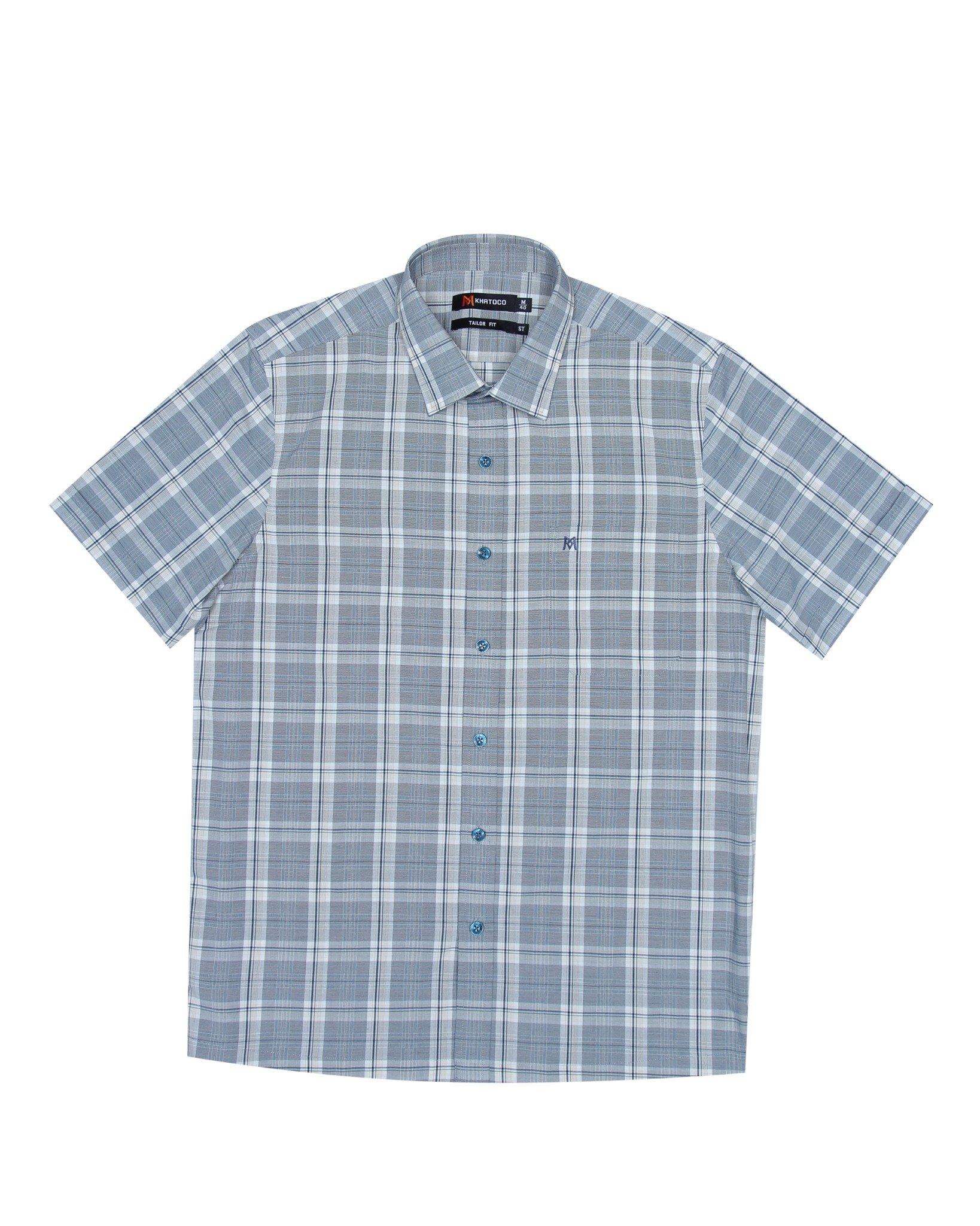Áo sơ mi nam tay ngắn lai ngang – Khatoco - Mã hàng: A1MN538T2 - Chất liệu: 75% Polyester + 22% Viscose (Bamboo) + 3% Spandex → Vải mềm mại, thoáng mát, co giãn nhẹ,