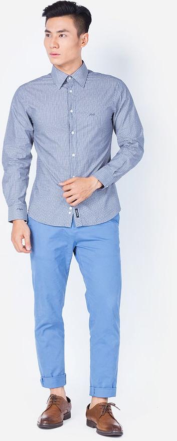 Thành phần : 85%Polyester-15% Viscose Phom dáng : Tailor Fit Màu sắc : BLUE Kiểu dáng : TAY DÀI Hoa văn : HOA VĂN Áo sơ mi tay dài lai bầu, suông vừa ,