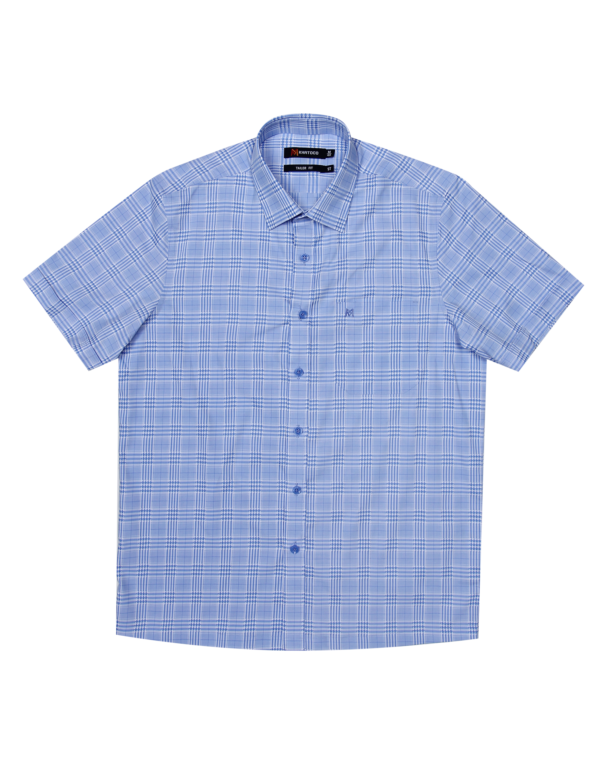 Áo sơ mi nam tay ngắn lai ngang – Khatoco - Mã hàng: A1MN538T2 - Chất liệu: 75% Polyester + 22% Viscose (Bamboo) + 3% Spandex → Vải mềm mại, thoáng mát, co giãn nhẹ,