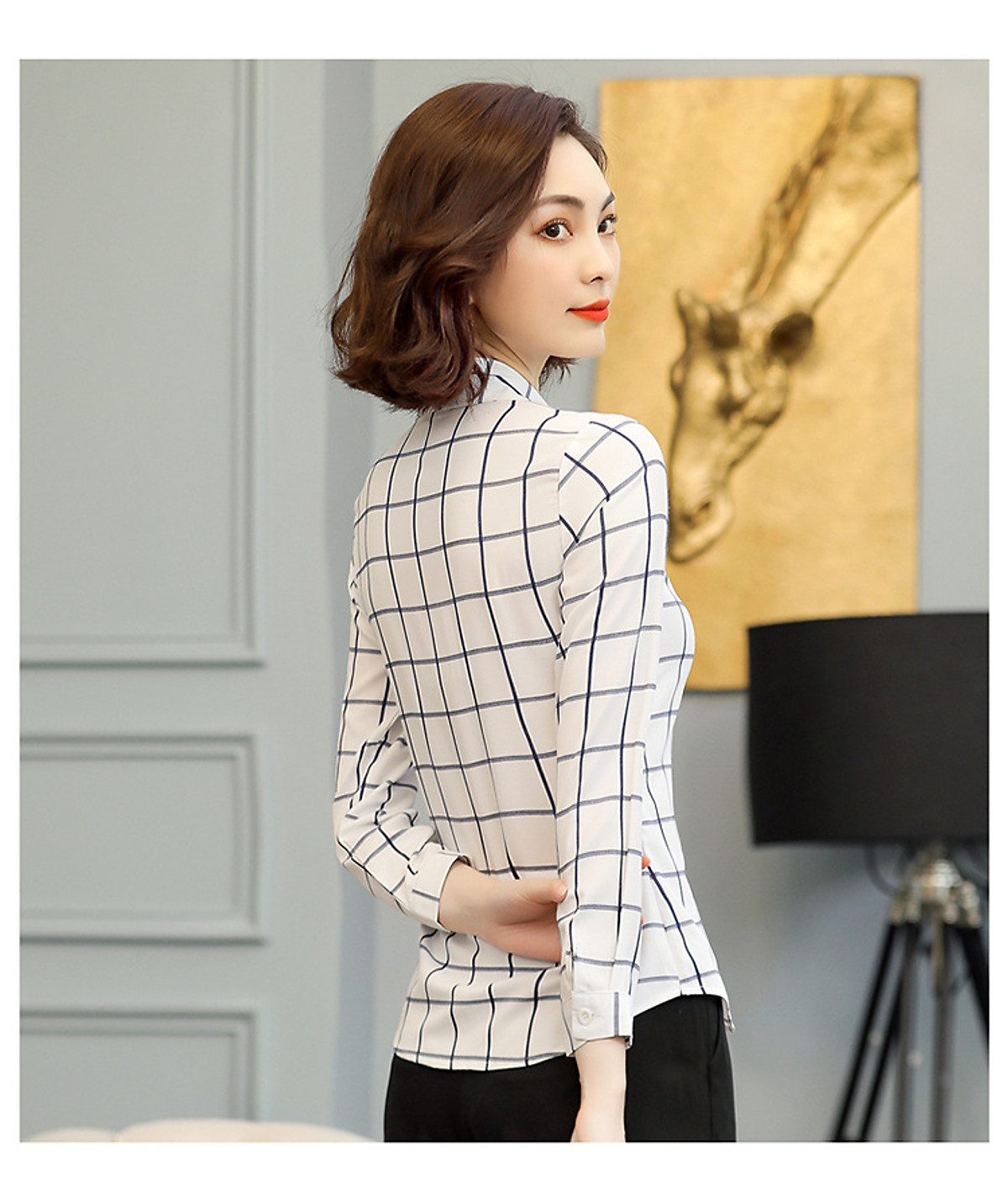 -Sơ mi nữ được thiết kế thanh nhã với kiểu áo form rộng trẻ trung