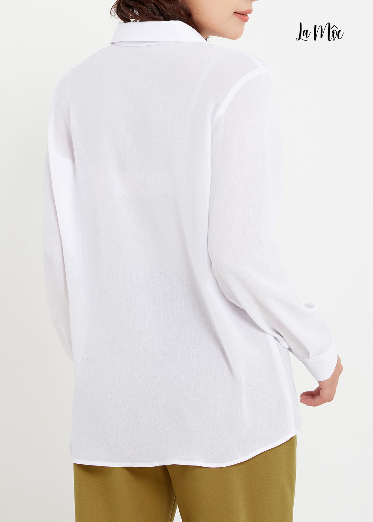 Áo sơ mi, áo công sở LA MỘC, áo sơ mi trắng, tay dài, có túi, chất liệu cotton, hàng thiết kế