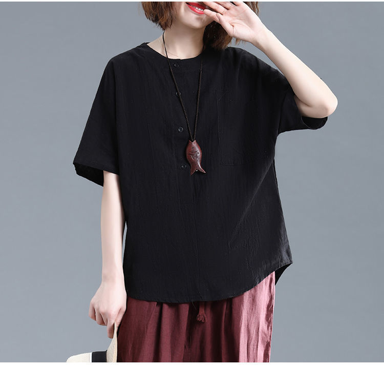 - Tên sản phẩm: Áo sơ mi nữ kiểu tay ngắn cổ tròn, chất liệu Đũi tơ thấm hút mồ hôi, áo sơ mi form rộng nhiều màu.