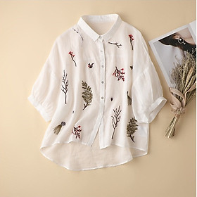 ✨Áo sơ mi nữ tay lỡ cổ đức, họa tiết thêu hoa tinh tế, chất liệu Đũi mềm mát co giãn nhẹ, form đẹp NeSa Shop SMH.55