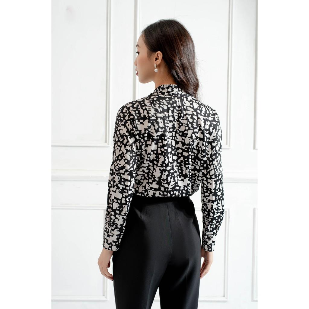 ✨Áo sơ mi nữ Tri'C Luxury họa tiết tay dài Đen S011119
