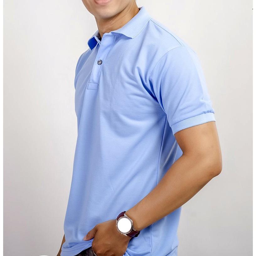 Áo thun cá sấu nam vải cotton co giãn 4 chiều Màu Xanh Dương