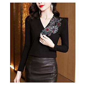 Áo big size chât thun dệt kim co giản, mềm mại. Họa tiết đính cườm chắc chắn, tạo điểm nhấn sang trọng Thích hợp mặc vào các dịp quan trọng, hội họp, đám tiệc, hoặc