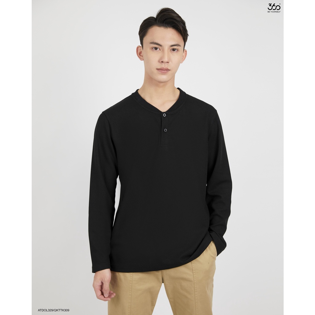 ✨Áo thun nam dài tay cổ henley thương hiệu thời trang nam 360Boutique áo thun basic hai màu trắng đen - ATDOL329