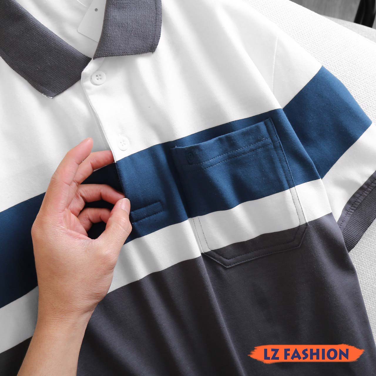 ✨ÁO THUN TAY NGẮN CÓ CỔ PHỐI TÚI SỌC ĐỘC ĐÁO, PHONG CÁCH LỊCH LÃM - LZ FASHION - LZPS143