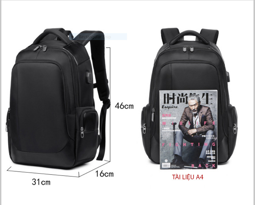Mua tại TiktokKích thước : rộng 31cm ,cao 46cm,dày 16cm Phong cách : châu âu Phương pháp sản xuất: công nghệ cao Chất liệu : Vải OXFORD được mã hóa SIÊU CHỐNG THẤM NƯỚC Chức năng: Không thấm nước, thoáng khí, chống mài mòn, làm sáng, chống sốc,sạc usb tiện dụng thiết kế : trẻ trung ,sang trọng
