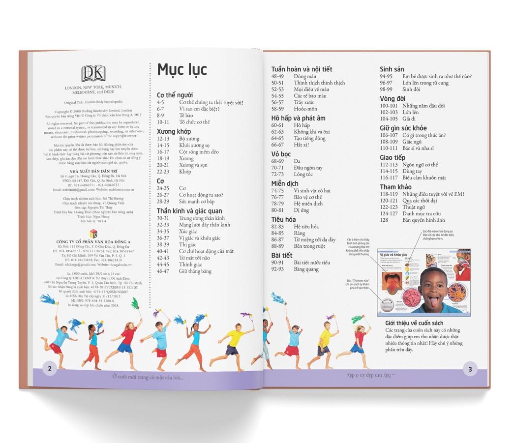 Với các hình minh họa trực quan sinh động, bắt mắt, cuốn sách cung cấp một lượng kiến thức phong phú, súc tính, dễ hiểu, cùng những câu hỏi vui, mẩu thông tin thú vị về cơ thể người. Ngoài ra, không chỉ giới hạn trong việc cung cấp kiến thức, Bách khoa cơ thể người còn gợi ý và hướng dẫn nhiều hoạt động để em hiểu thêm về cơ thể của chính mình.