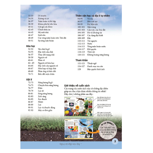 Với các hình minh họa trực quan sinh động, bắt mắt, cuốn sách cung cấp một lượng kiến thức phong phú, súc tích, dễ hiểu, cùng những câu hỏi vui, mẩu thông tin thú vị về khoa học. Em sẽ được tìm hiểu từng lĩnh vực mà khoa học nghiên cứu, từ sinh vật học, hóa học, vật lí tới thiên văn học. Bên cạnh đó, em có thể tìm trong cuốn sách các hướng dẫn và gợi ý giúp em thử làm nhà khoa học nhí nữa đấy.