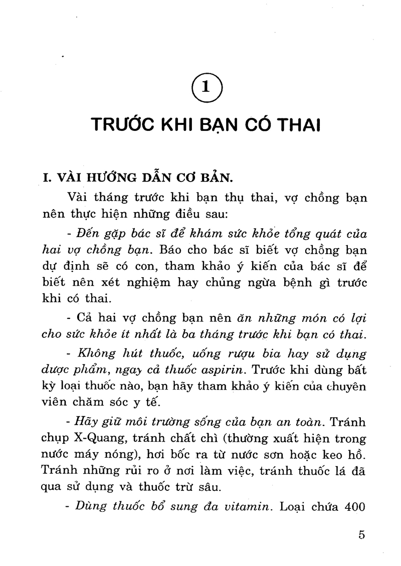 Bách khoa Tri Thức Thai Sản Tập 1 - Để Sinh Con Khỏe Mạnh & Thông Minh Mục lục sách: Chương I: Chuẩn bị trước khi mang thai 1. Những tri thức cơ bản về