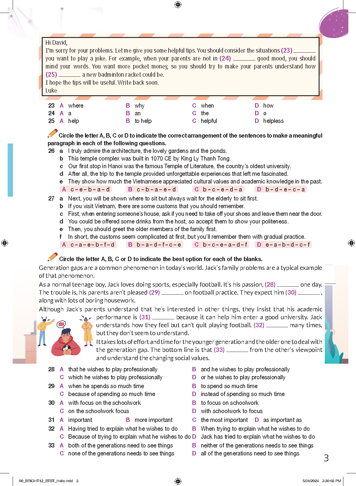 Sách bài tập bổ trợ Tiếng Anh 12 Bright được biên soạn với mục tiêu mang đến cho các em học sinh nguồn bài tập bổ trợ phong phú theo sát chương trình học. Các